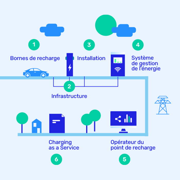 Vous êtes à la recherche d’une solution de recharge pour plusieurs voitures à la fois sur votre terrain industriel, parc de vacances, centre commercial ou autre parking?